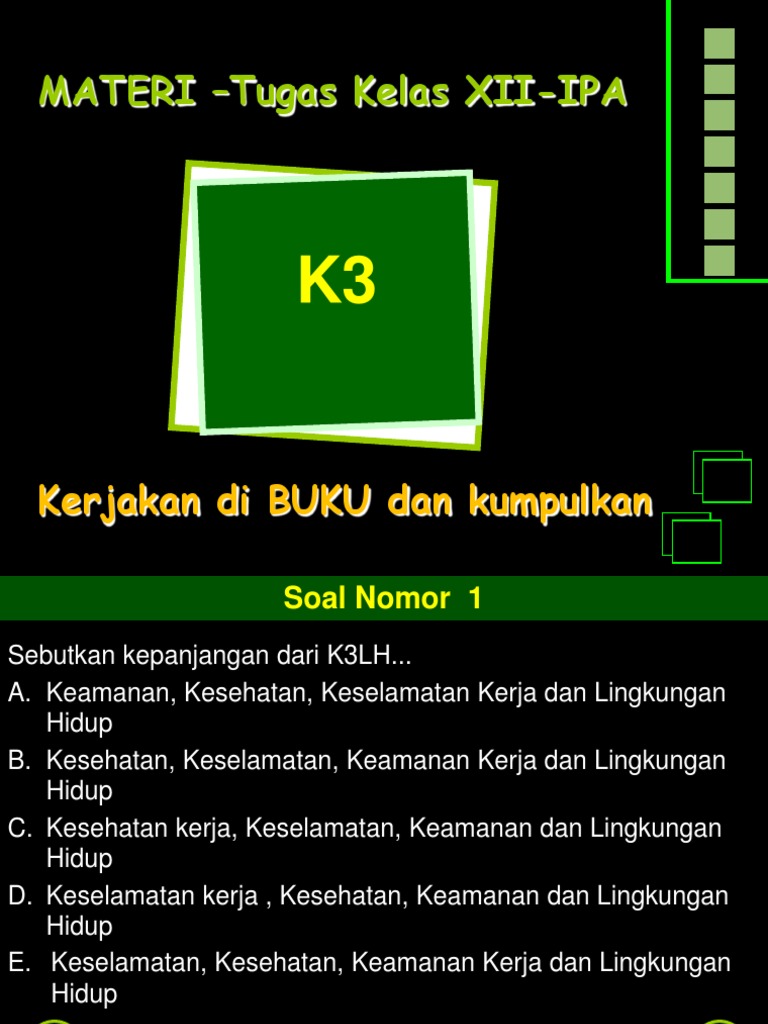 Sebutkan kepanjangan dari k3lh *. We did not find results for: Maybe you would like to learn more about one of these? Check spelling or type a new query.